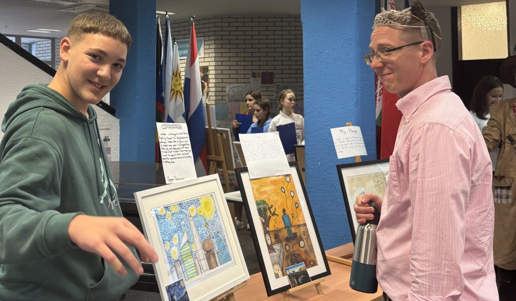 The atmosphere was very positive and full of excitement. Everyone enjoyed seeing how much effort and passion went into each artwork. The exhibition showed how art can bring people together and how every student can express themselves in a different way.
